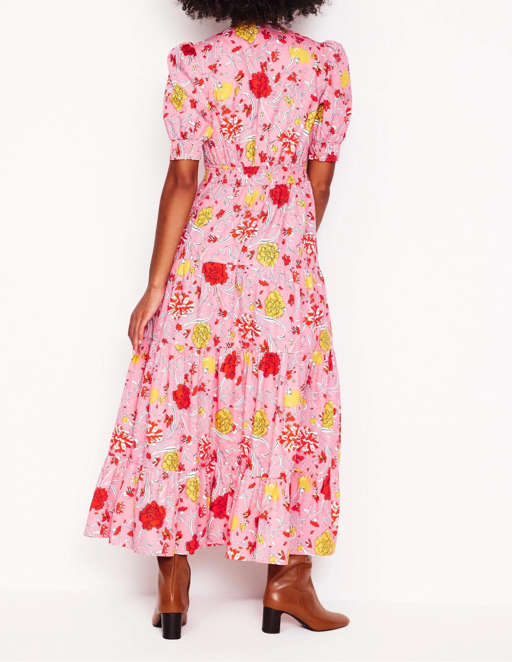 Pink and Yellow Floral Puff - Sleeve Maxi Dress