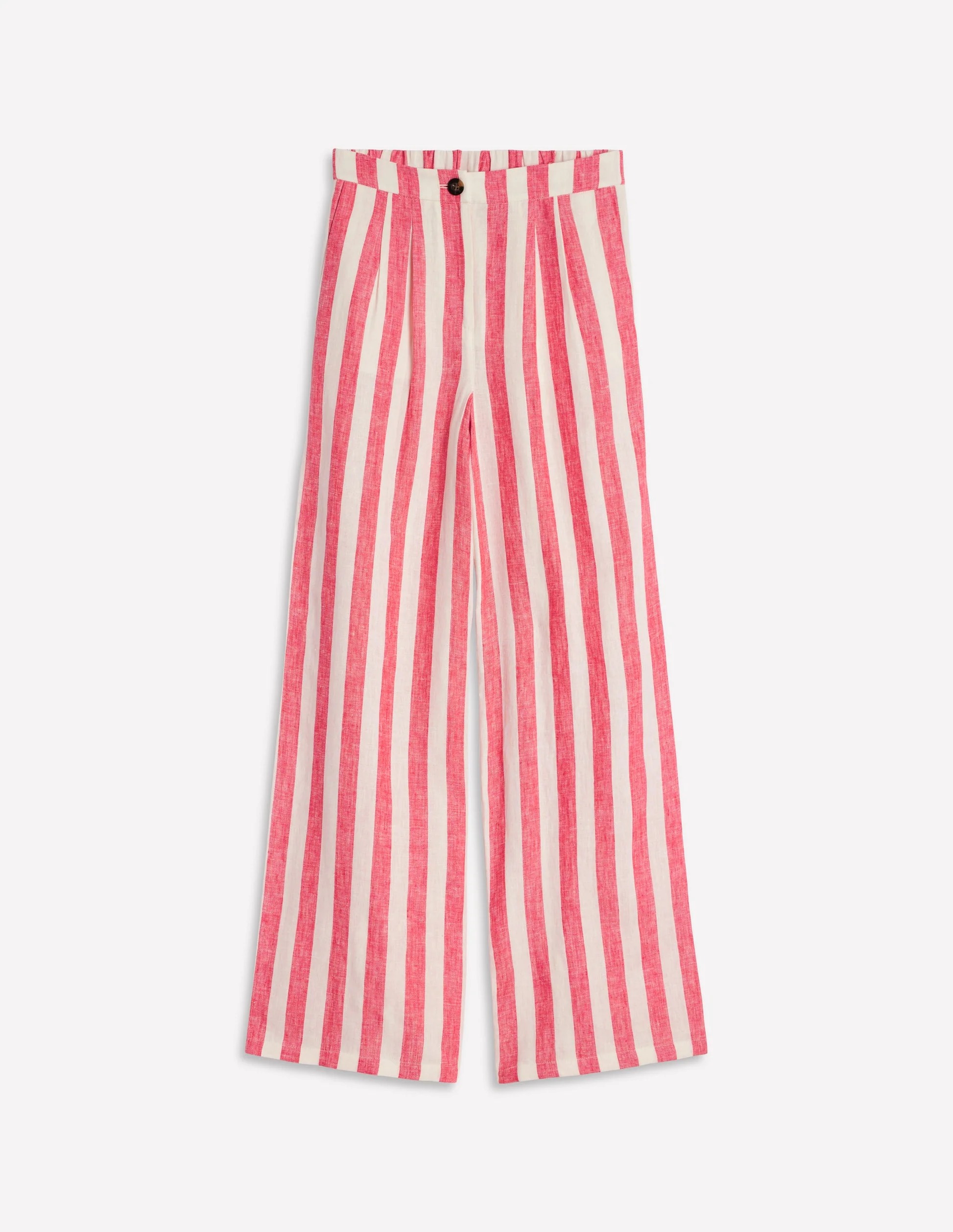 Pink and White Striped Wide - Leg Linen Pants