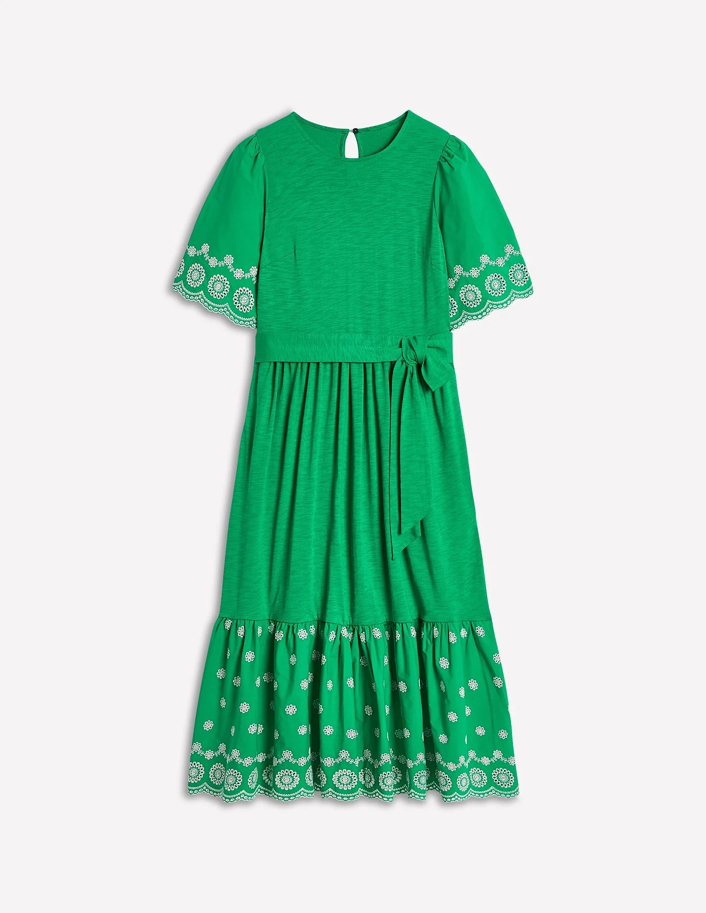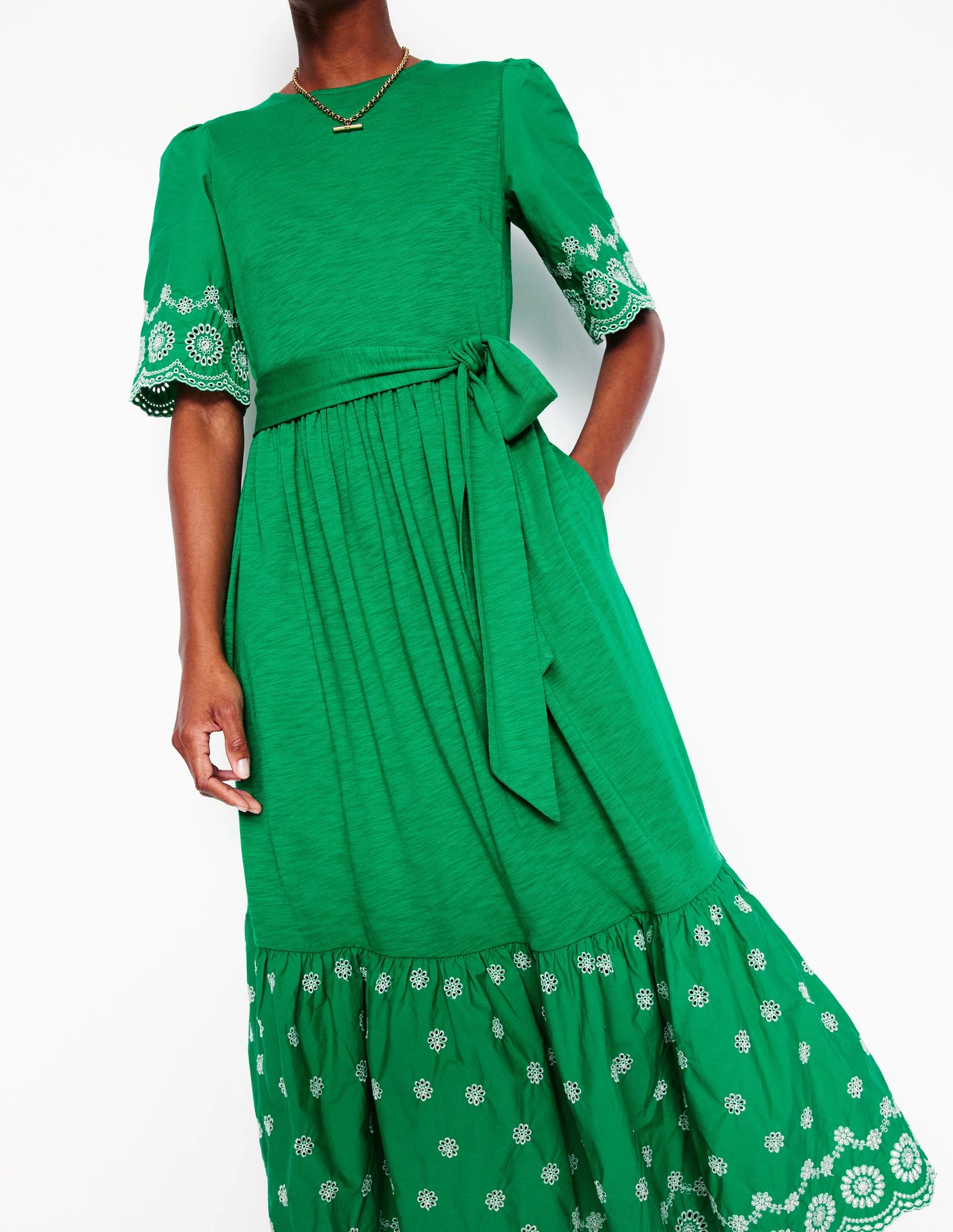 Emerald Green Embroidered - Hem Midi Dress