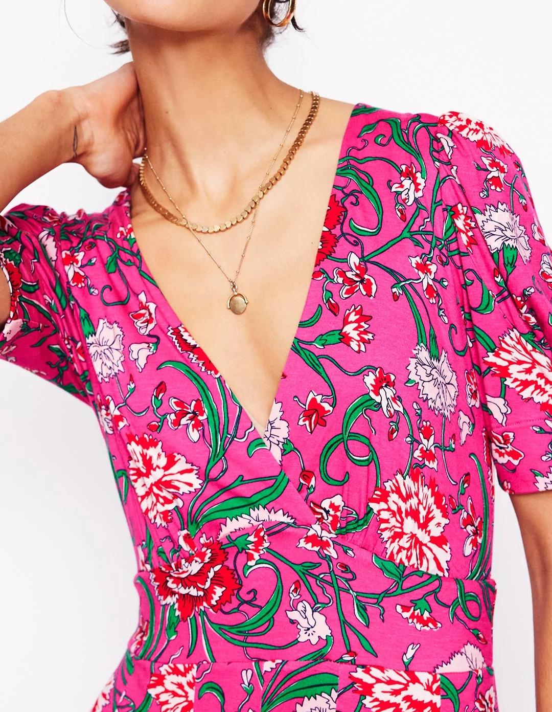 Magenta Pleated Jersey Wrap Dress